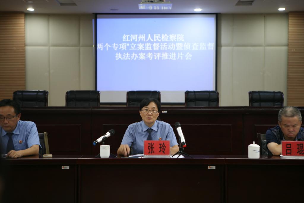 8月9日下午,全州“两个专项”立案监督活动暨侦查监督执法办案考评推进会南部片会在元阳县检察院召开。州院副检察长张玲出席会议并作重要讲话,我院党组书记、检察长吕琨致欢迎辞,州院侦监处处长兰伟主持会议。全州南部六个县市院分管侦监工作的院领导、侦监部门负责人共20人参加会议。