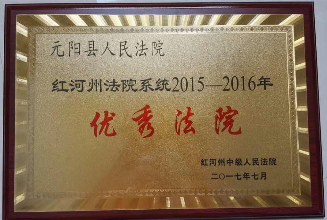 日前,由红河州中级人民法院组织评选的2015-2016年全州法院系统优秀法院和先进个人评选结果揭晓,元阳县人民法院荣膺“红河州法院系统2015-2016年优秀法院”荣誉称号。同时,执行局白福光荣获“执行能手”殊荣,一同受到中院表彰。